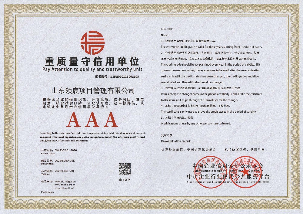 山東領宸項目管理有限公司是一家以全過程工程咨詢為核心的咨詢服務公司,本公司現具備工程造價咨詢乙級資質,房屋建筑工程、市政工程監理乙級資質和招標代理備案。公司擁有專業的工作團隊及豐富的行業經驗,在行業領域內具有雄厚的實力,企業管理人員擁有行業20年以上的資深行業工作經驗。公司現有專業技術人員50余人,具有一級注冊造價工程師、注冊監理工程師、一級注冊建造師、二級注冊建造師、招標師等工程類國家注冊執業資格證書人員合計30余人以及高級工程師3人,持證上崗率達到90%......